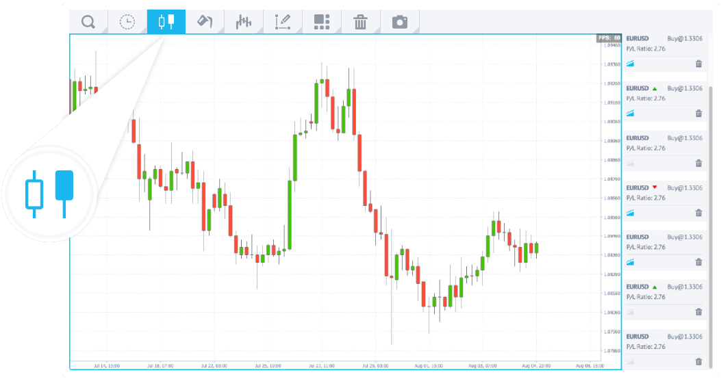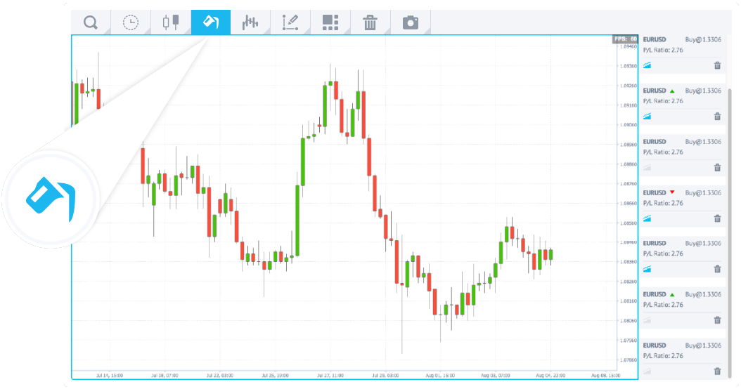 Main menu functions: all of chart’s settings, allowing you to reach maximum customization for your trading style. Special features: some additional user-friendly features and shortcuts, that allow you a better control and expanded abilities.
